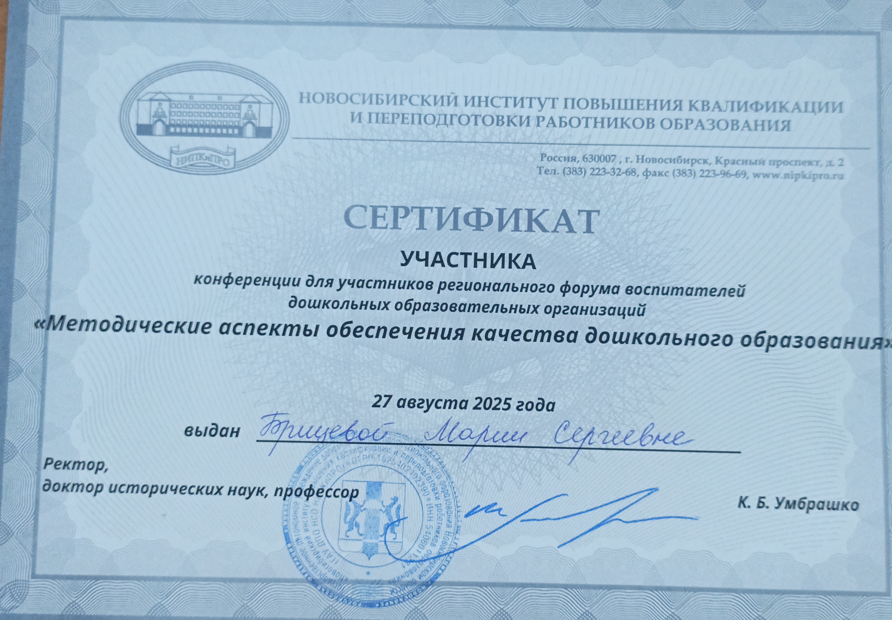 Сертификат участника конференции.
